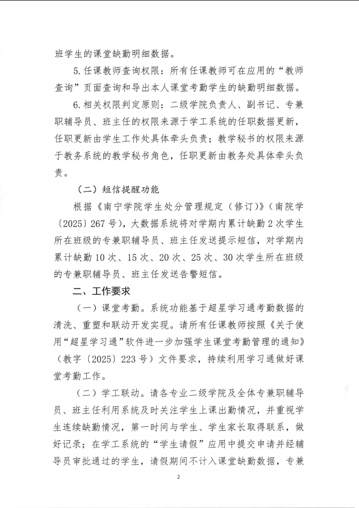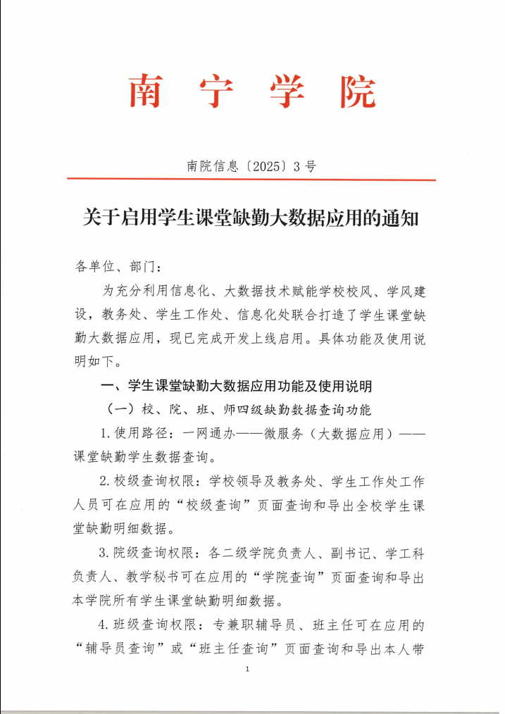 (南院信息〔2025〕3号)关于启用学生课堂缺勤大数据应用的通知
