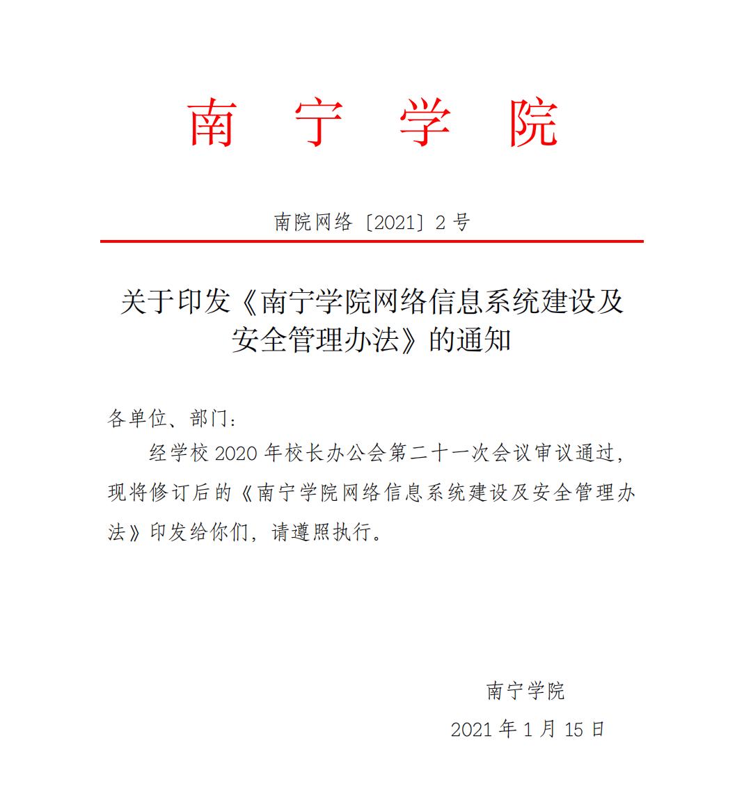(南院网络〔2021〕2 号)关于印发《南宁学院网络信息系统建设及安全管理办法》的通知.pdf