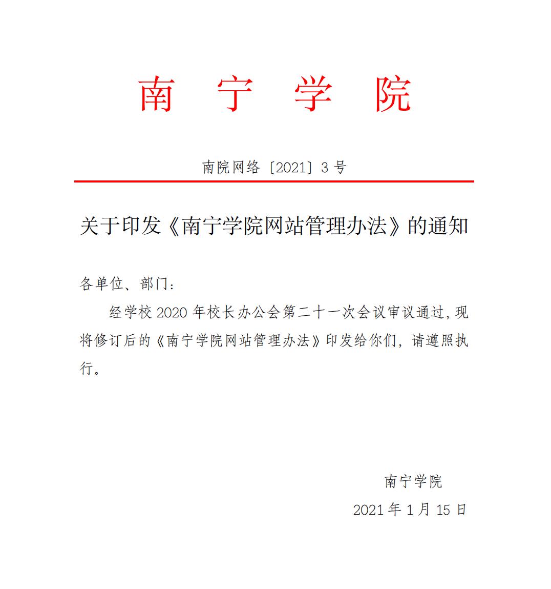 (南院网络〔2021〕3 号)关于印发《南宁学院网站管理办法》的通知