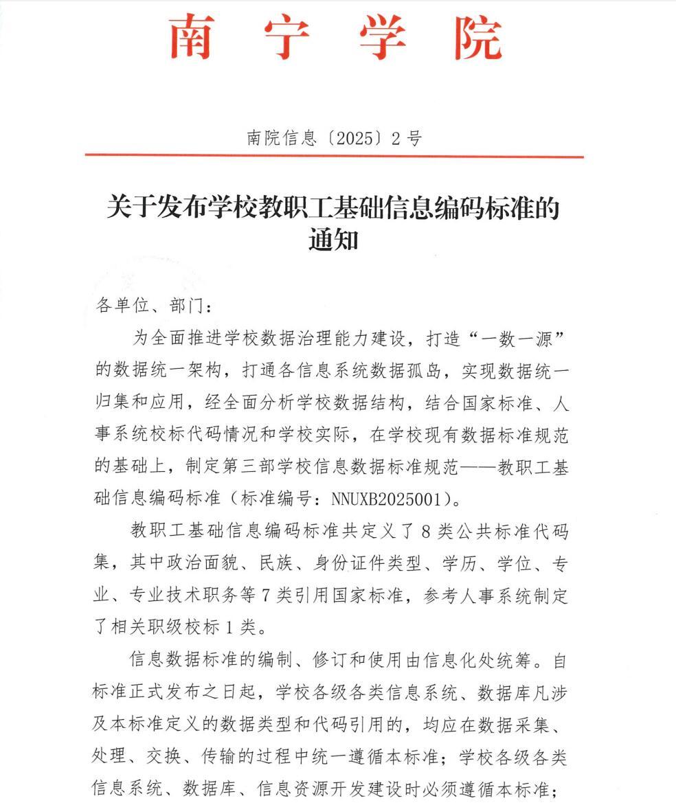 (南院信息〔2025〕2号)关于发布学校教职工基础信息编码标准的通知